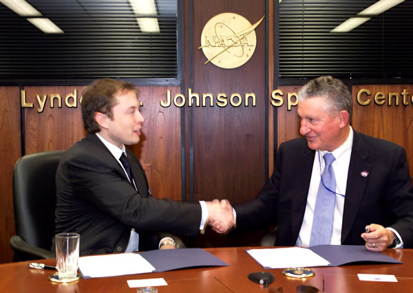 Credit goes to the folks at the NASA Johnson Space Center for very quickly drafting and executing a Space Act Agreement with SpaceX. JSC is the primary NASA center for human spaceflight and, since human transportation is the primary long term goal of SpaceX, we are likely to be doing a lot of work in partnership.